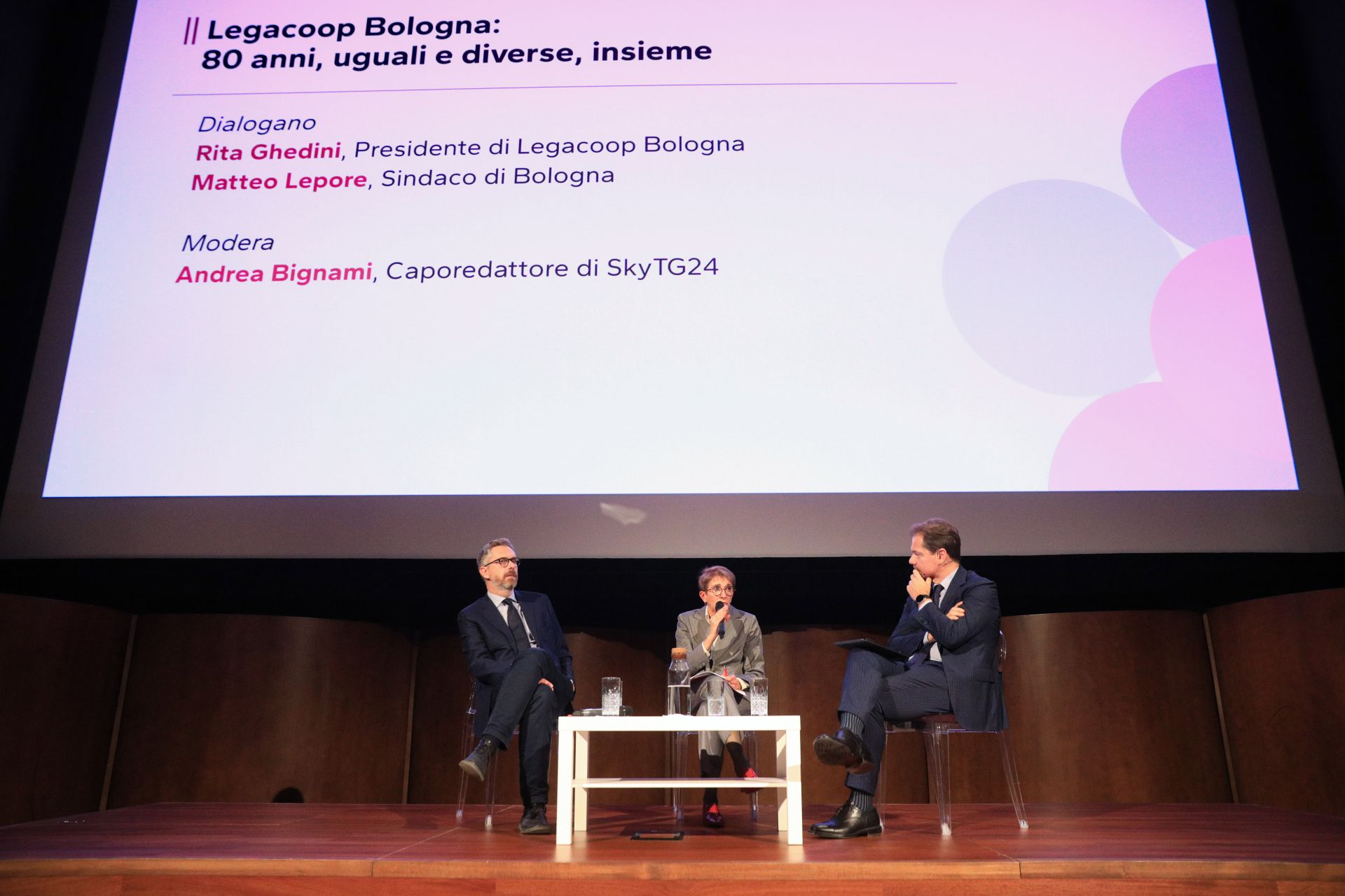 Un confronto che ha toccato temi trasversali ed attuali, condotto da Andrea Bignami, caporedattore di Sky TG24, che ha chiuso l’appuntamento con una doppia intervista alla presidente di Legacoop Bologna, Rita Ghedini e al sindaco di Bologna, Matteo Lepore: “80 anni, uguali e diverse, insieme”, è il claim del nostro 80° anniversario da cui è partito un interessante confronto tra passato, presente e prospettive future, per il mondo cooperativo e per la città.